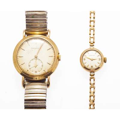 the circular dial with baton numerals, subsidiary seconds dial, presentation inscription to reverse, numbered 110365, sprung gilt metal bracelet; together with a lady's Certina wrist watch (2)
