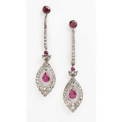 A pair of platinum and diamond set earrings