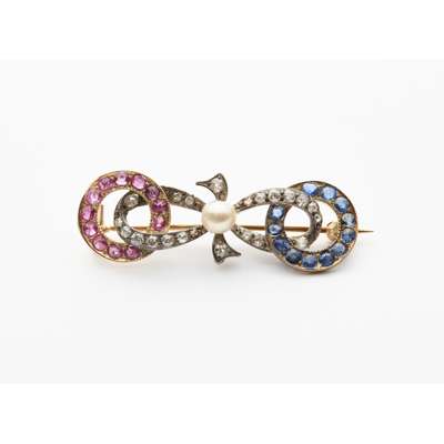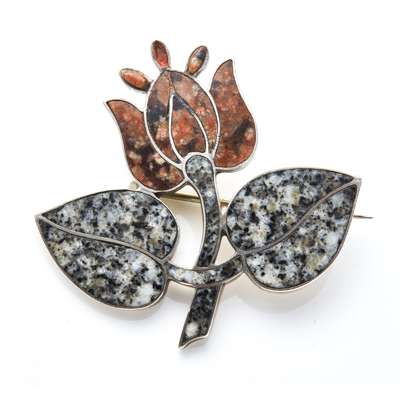 An amethyst and hardstone set kilt pin