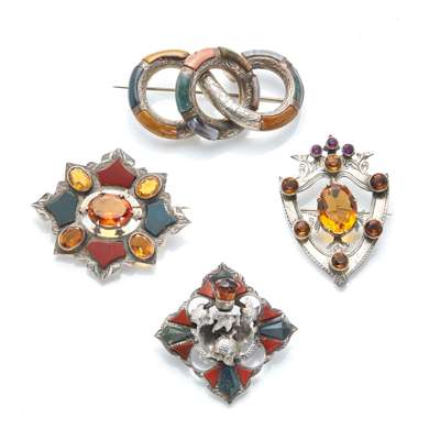 A collection of agate set brooches