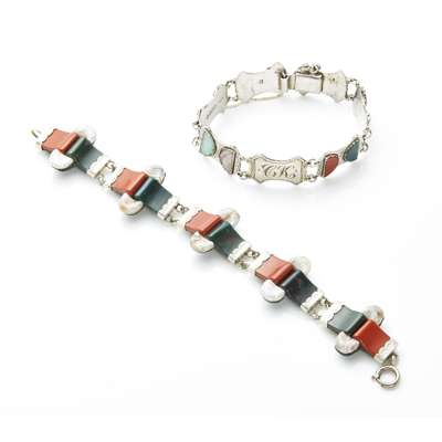 Two silver and agate set bracelets