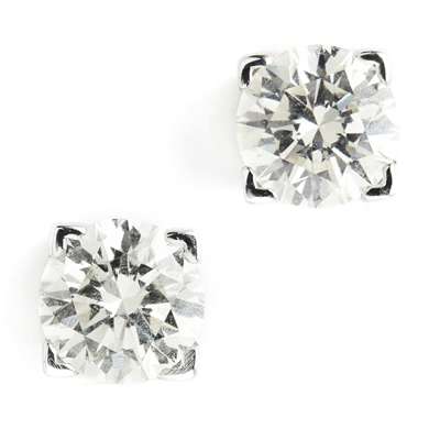 A pair of diamond stud earrings