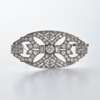 of oval outline with pierced detail, collet set to the centre with a round cut diamond, and throughout with graduated old round and eight cut diamonds, indistinct marks to pin