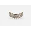 claw set with baguette cut diamonds and pairs of round brilliant cut diamonds, to a plain white metal shank stamped PLAT