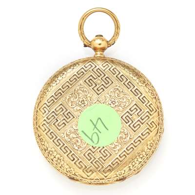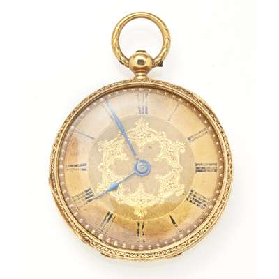 floral engraved case, lever movement, key wind, gilt dial with Roman numerals