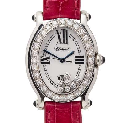 Happy Sport, stainless steel case, diamond set bezel, white dial, Roman numerals, with seven collet set loose diamonds, sapphire cabochons to the winder and lug terminals, numbered to rear: 27/8937-23 1095503 8937, plum coloured leather strap, with boxes and papers