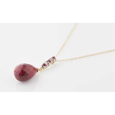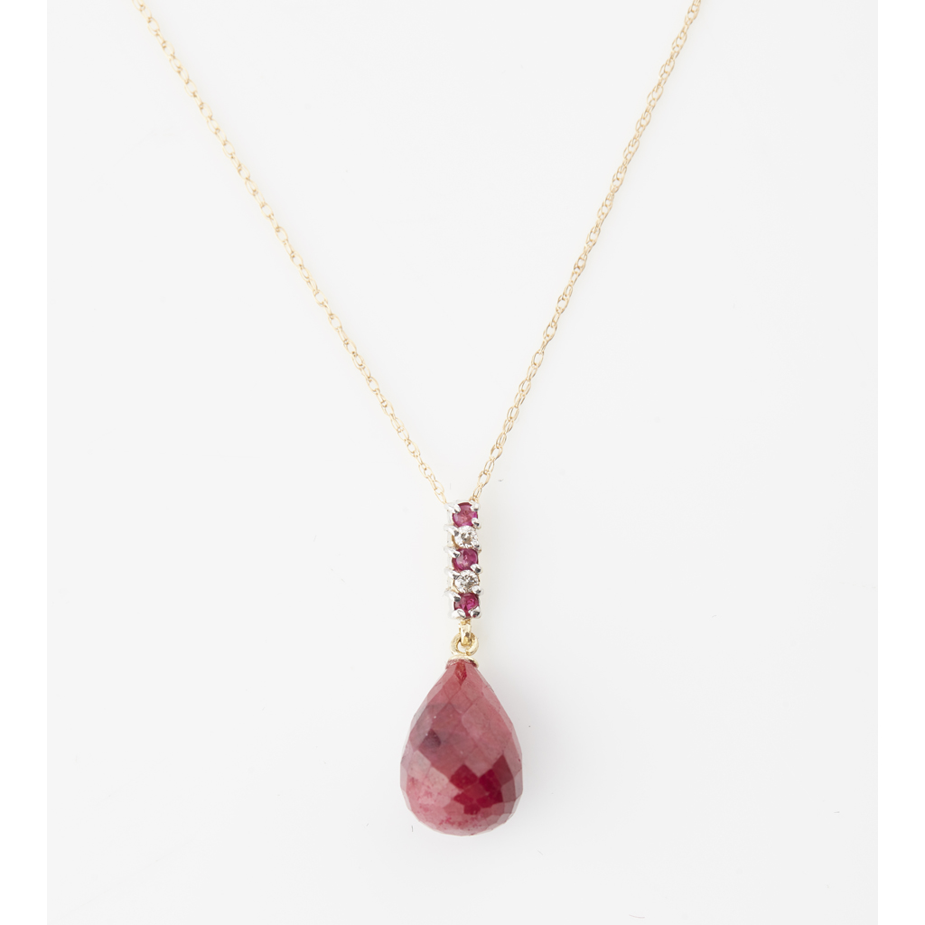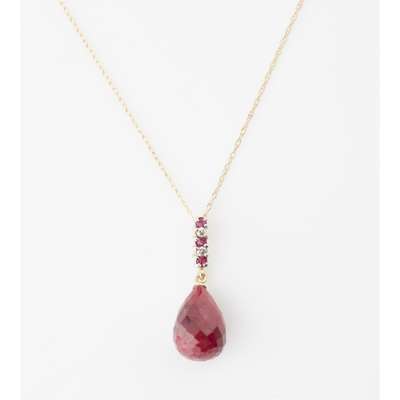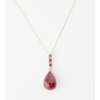 composed of a pear shaped briolette ruby suspending from a row of six alternating claw set ruby and diamonds
