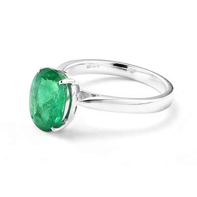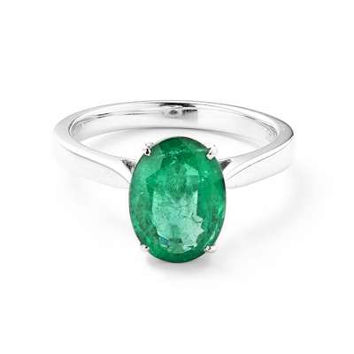 claw set with a single oval cut emerald, to a plain 18ct white gold shank
