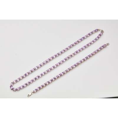 each set with a single row of oval cut amethysts, clasps stamped 925 (2)