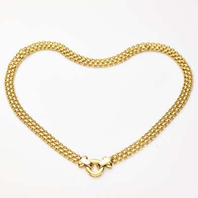 composed of woven figure of eight links, clasp stamped 750