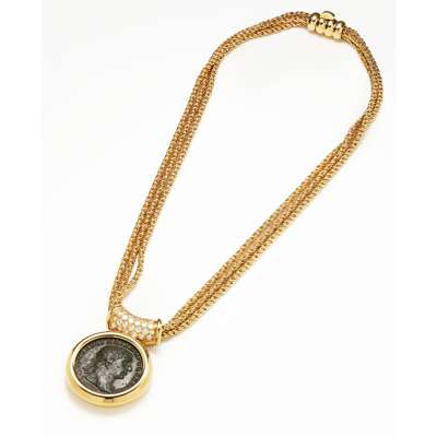 A diamond and coin set necklace