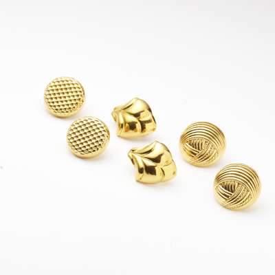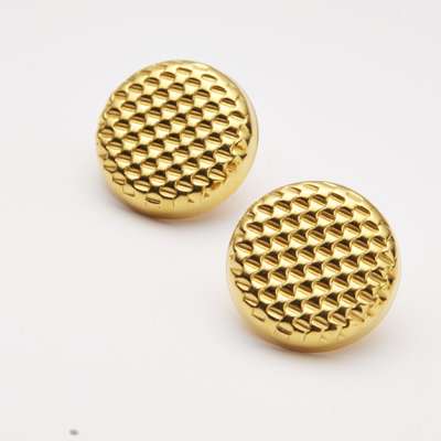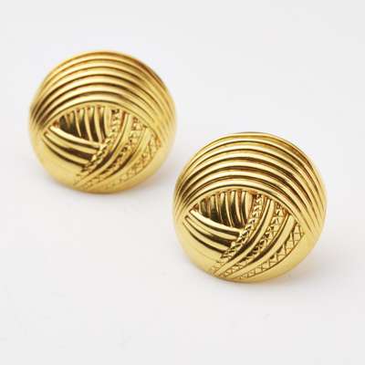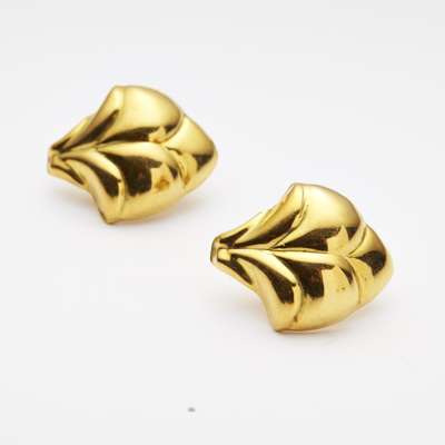 two pairs of domed design, one woven pattern the other diamond pattern, stamped 750, the third pair of moulded palmette design, all with post and clip fittings (3)