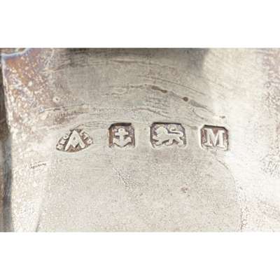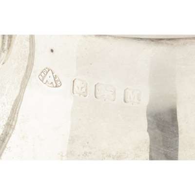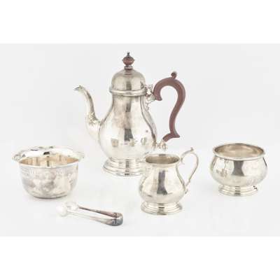 Adie Brothers Ltd, Birmingham 1936, comprising of coffee pot, milk jug and sugar bowl with tongs, all of baluster form, scroll handle, together with a sugar bowl, Atkin Brothers, Sheffield 1916, of circular form with scalloped edge (5)