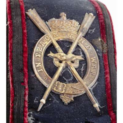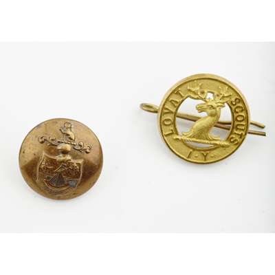 cloth deteriorated; a Shako badge of large size for the 48th; two part buckles; Lovat Scout gilt badge (small size); a part shoulder plate for the Royal Regiment and a belt with mounts in gilt (qty)