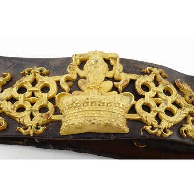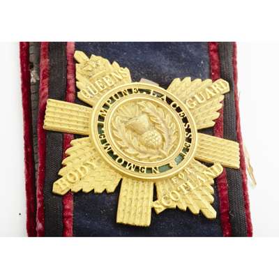 QUEEN'S ROYAL BODYGUARD - A shoulder belt with gilt and enamelled badge and a silver oval badge