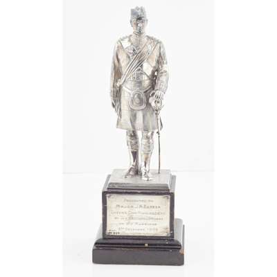 THE QUEEN'S OWN CAMERON HIGHLANDER'S INTEREST- A PRESENTATION SILVER STATUE