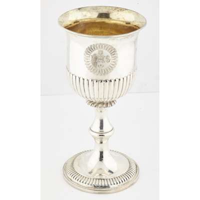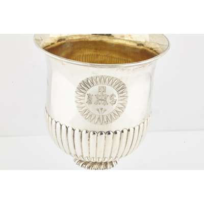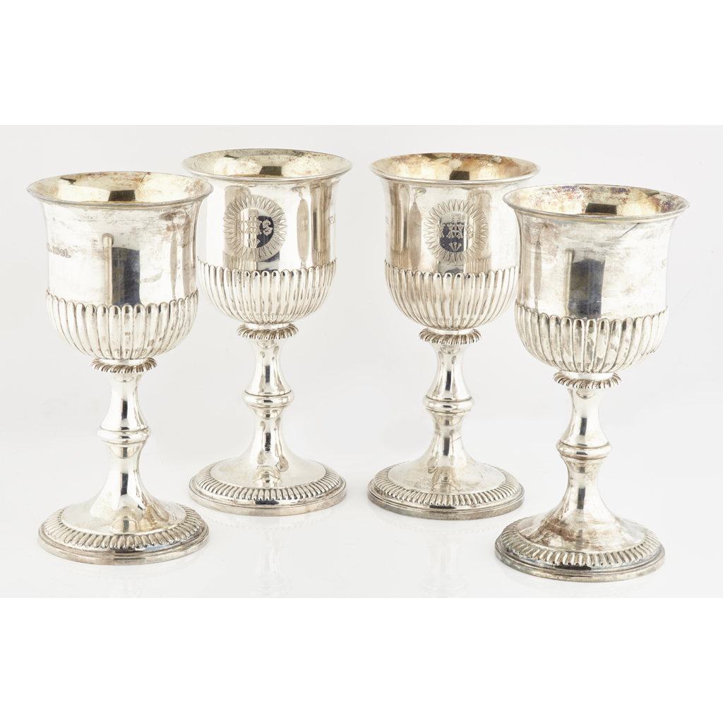 Rebecca Emes & Edward Barnard I, London 1824, slight flared rim, gilt interior, the demi-ribbed body with presentation inscription relating to St. Andrews Rodney Street, Liverpool 1824, all raised on a baluster stem demi ribbed spreading foot (4)