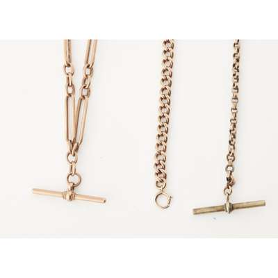 of fetterlink form with T bar, and a part section of curb link bracelet