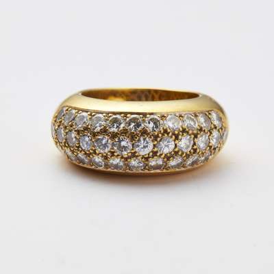 pavé set with three rows of graduated round cut diamonds, indistinctly marked