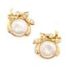 each set with a bouton pearl, in a stylised foliate surround set throughout with graduated round brilliant cut diamonds, to post and clip fittings, stamped 750