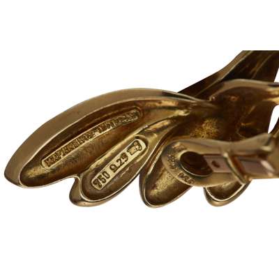 of stylised foliate design with textured ground, the lower petal drops detachable, clip fittings, stamped 750, signed MAPAMENOS NATEPAS