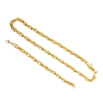 each composed of textured oval links, to a lobster type clasp, stamped 14k, probably gold plated (2)