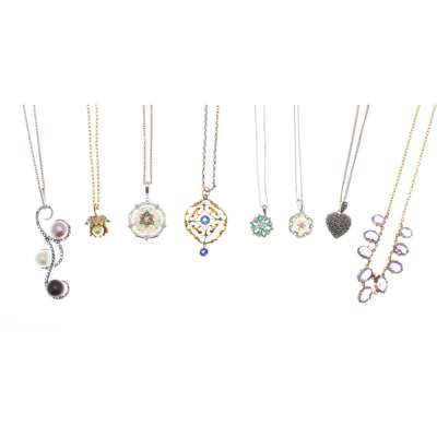 A large collection of gem set pendants