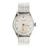 Ref 88 1145402, case back no. 1161960, plain polished steel case, off white dial, gilt dot and Arabic numerals, subsidiary seconds dial, later sprung bracelet