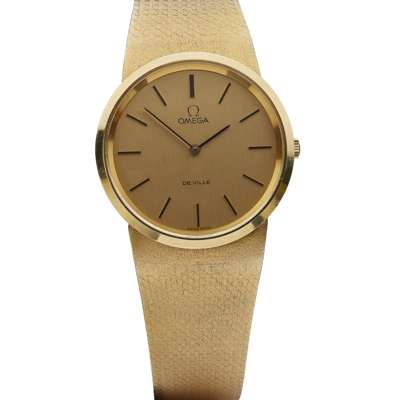 De Ville, plain gold bezel, gilt dial, black indicators, mechanical movement, with added fine Milanese link gilt bracelet, fold over clasp, with box and papers