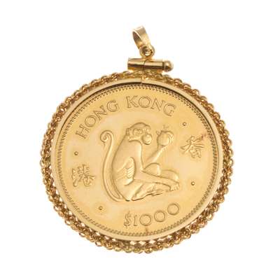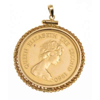 1980, in a detachable mount with rope-twist detail, bale stamped 14k