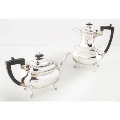 Walker and Hall, Sheffield, of plain rounded rectangular form raised on four short cabriole legs (2)