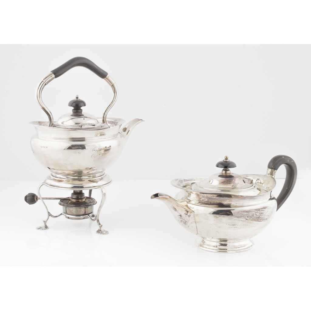 A matched teapot and spirit kettle