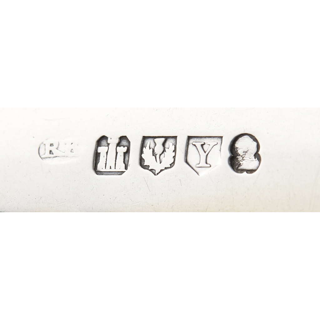 Robert Keay,marked RK, Edinburgh 1804, of Old English pattern with script initials ALH and numbered to terminal and a pair of bastings spoons marked RK, eagle repeated four times, of Fiddle pattern with script initial P to terminal together with a pair of tablespoons, David Greig, marked DG, eagle, DG, eagle, of Fiddle pattern with script initials WJG to terminal (qty)