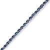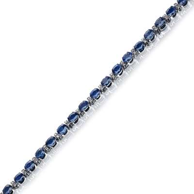 claw set with a single row of oval cut sapphires between pairs of small round brilliant cut diamonds, to a concealed clasp and safety clips, stamped 18k