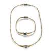 each composed of alternating matt yellow and polished white links, the central cluster set with a pear shaped sapphire, in a horse-shoe border of graduated channel set round brilliant cut diamonds, the box clasp with safety clip, stamped ZEN 750 (2)