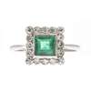 millegrain set with a square cut emerald, in a single border of millegrain set eight cut diamonds, to a plain white metal shank stamped PT