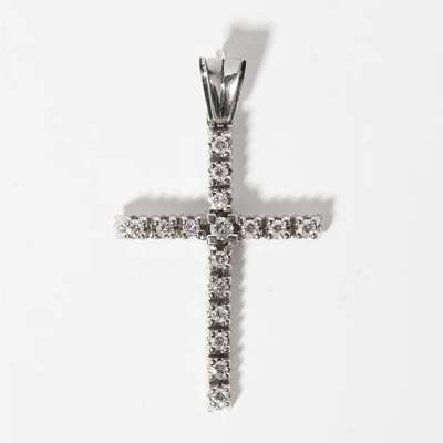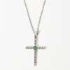 of traditional form, claw set to the centre with a round cut-emerald and throughout with round brilliant-cut diamonds, to a trace link chain, unmarked; together with a diamond set cross of traditional form, set throughout with round brilliant-cut diamonds, unmarked