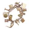 composed of curb links and a padlock clasp, suspending various charms, including a horseshoe, a gondola, a bible etc.