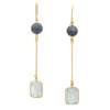 each collet set with a sapphire cabochon, suspending a trace link chain and collet set emerald-cut aquamarine, to hook fittings, unmarked