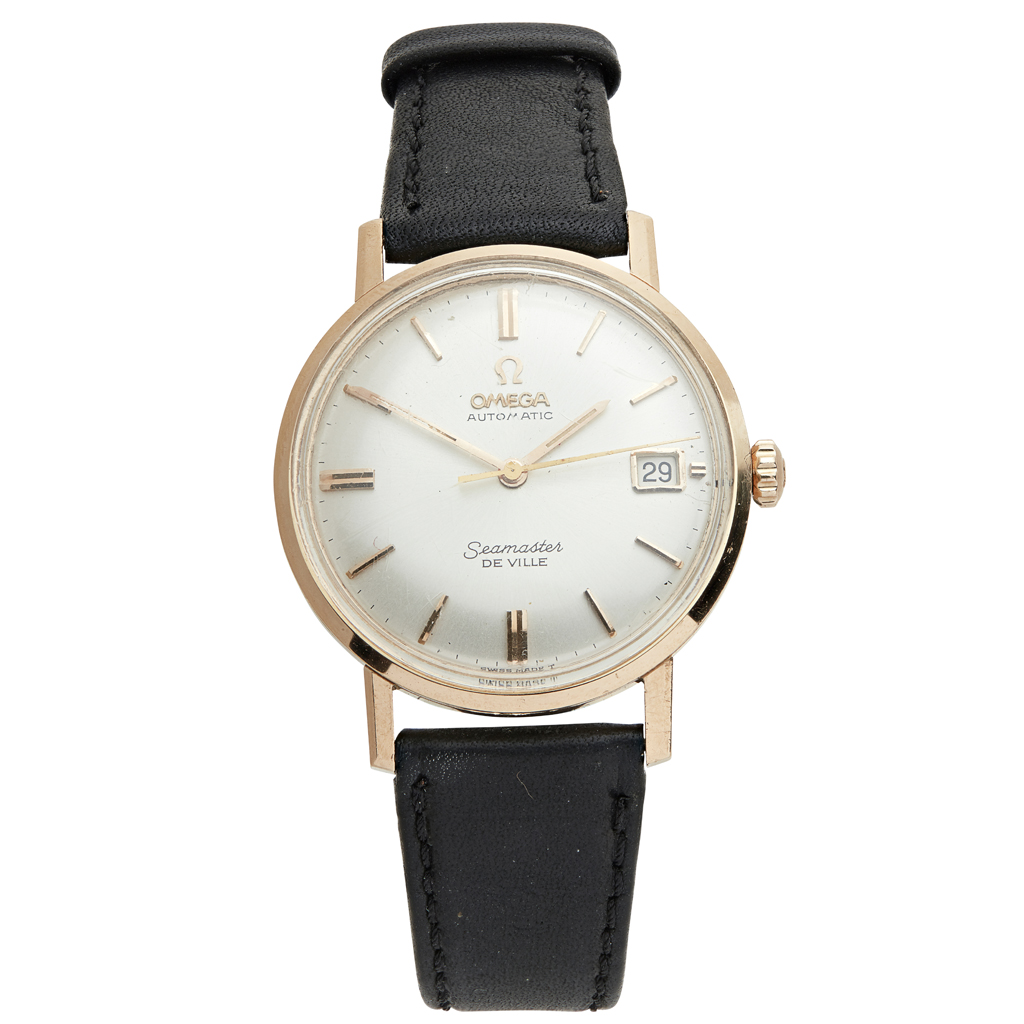 Seamaster De Ville, satin silver dial, sweep second hand, baton indicators, date aperture, plain hands, leather strap, Ref. 562, movement no. 2303535, bought November 1966, with papers
