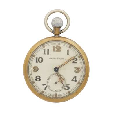 plated case, off white dial with bold luminous Arabic numerals, subsidiary seconds dial, the rear snap off cover with ordinance arrow, initials G.S.T.P and T 16721, lever movement