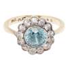 millegrain set with a round-cut zircon in a border of old round-cut diamonds, to a plain yellow metal shank, stamped 18ct PLAT