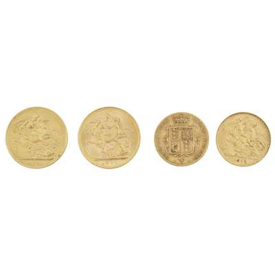sovereign, 1891, JH; 1900, VH; half sovereigns 1882, M, YH; 1911 (4)