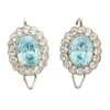 each millegrain set with a central oval-cut blue zircon, in a single border of small round-cut colourless zircons, hook fittings, unmarked