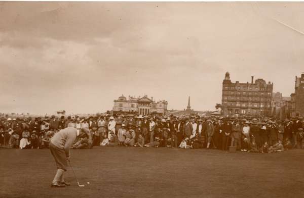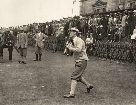 5. Wilson driving off at the Old Course;