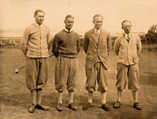 9. Photograph J. E. Neville USA, R. R. Johnston USA W. A. Murray GB, John Wilson GB on 1st tee, Murray and Wilson beat Neville and Johnston