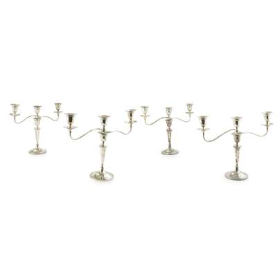 Parkin and Co. Sheffield 1961, of plain form, the removable branches with scrolled arms, reeded detail, tapering circular section stems to a spreading base (loaded)
