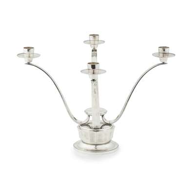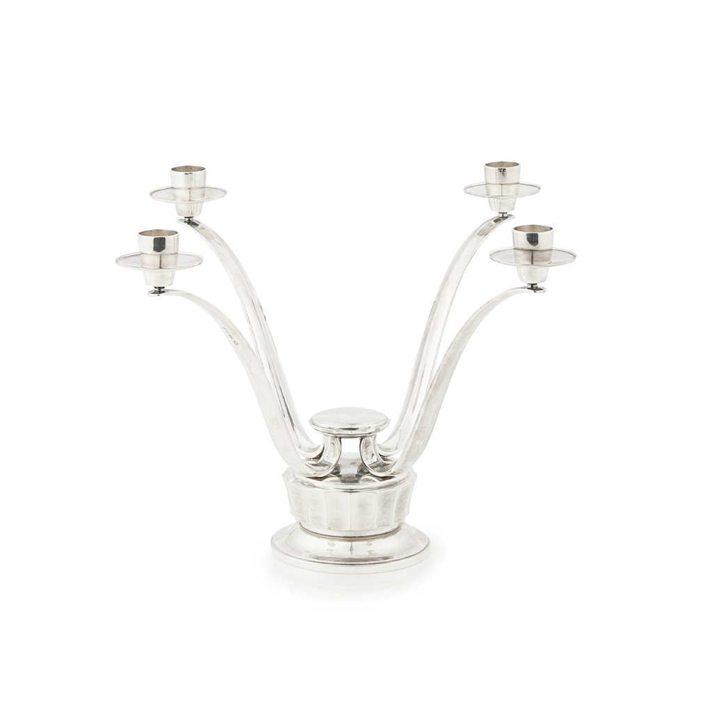 Asprey 1960, raised on a circular foot, the four sweeping branches terminating in circular sconces