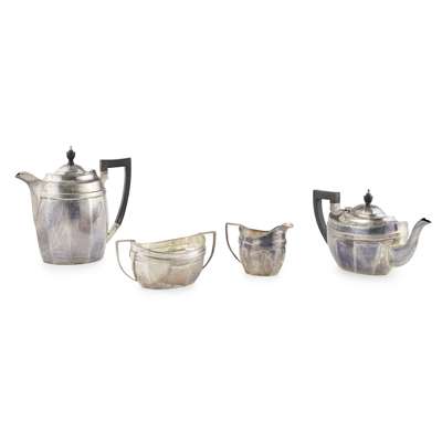 Barker brothers, Chester 1911, of panelled form, angular handles, comprising; tea and water pot, sugar and cream (4)