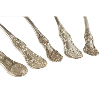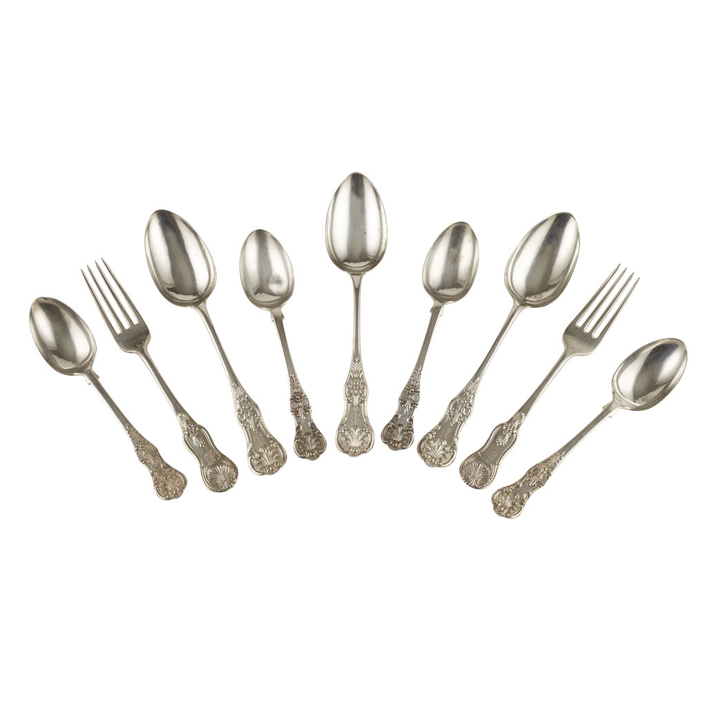 various dates and makers, comprising twelve double struck King's pattern table forks, and twelve of each single struck Queen's pattern table and dessert spoons, all with script initial 'P' (36)
